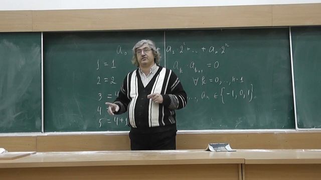 Любое натуральное число единственным образом выразимо через степени числа 2, каждая из которых использована не более одного раза с плюсом или минусом, причём запрещено использовать соседние степени. Это видео из альбома https://www.youtube.com/playlist?list=PL1JJ1jVZ9z5B7USVsSlcWFUjp6orEqHAX Альбом «Задачник "Кванта"» https://www.youtube.com/playlist?list=PL1JJ1jVZ9z5BV88j2IxJQYRNJFSMrkNVC Условия и ссылки на решения: http://www.kvant.info/zkm_tex/zkm_main.pdf