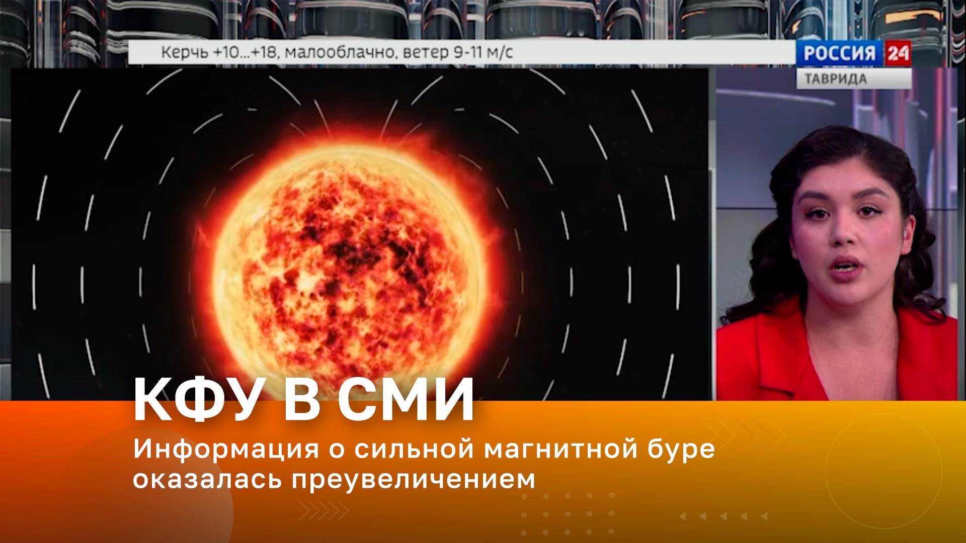 Телеканал «Россия 1. Таврида». В эфире – заведующий базовой кафедрой астрофизики и физики космоса КФУ им. В.И. Вернадского Александр Вольвач Тема эфира – Информация о сильной магнитной буре оказалась преувеличением
