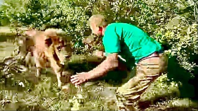 Это НУЖНО ВИДЕТЬ! Олег Зубков с голыми руками на ОГРОМНОГО ЛЬВА защищая молодых львов и их мясо!