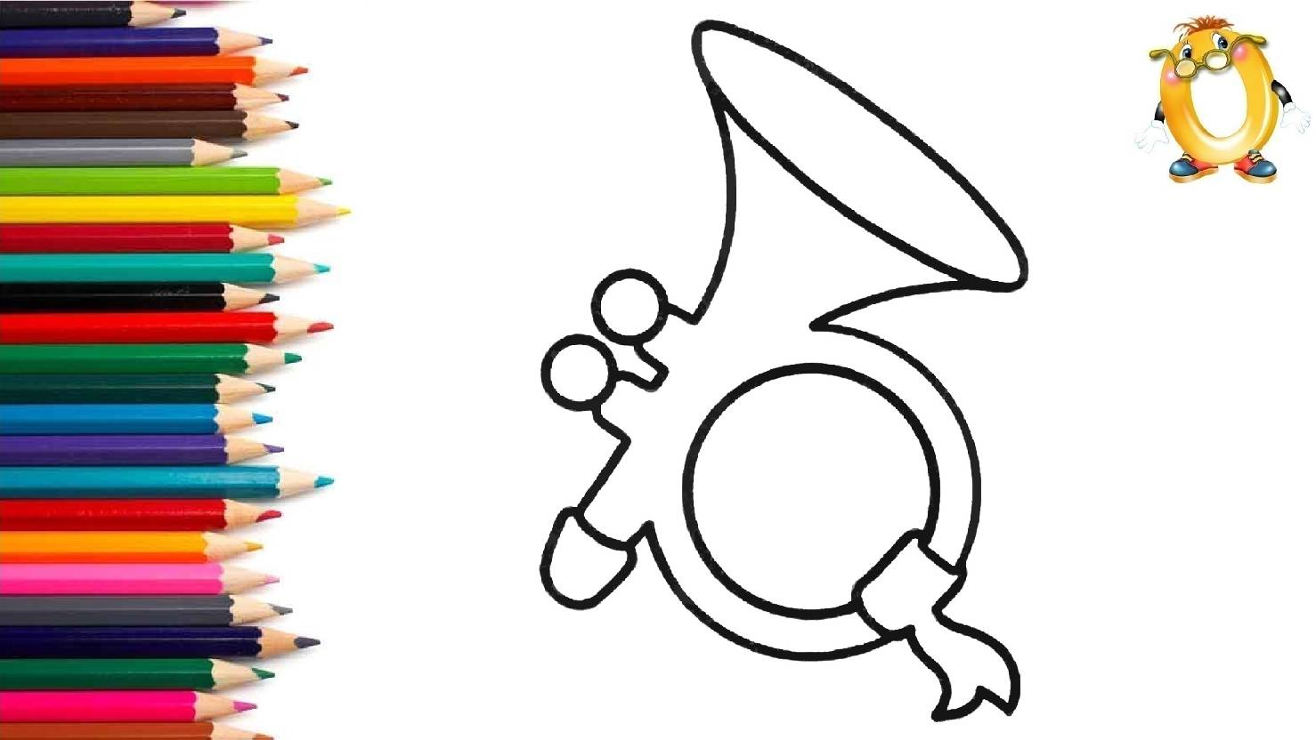Мультик - раскраска для детей МУЗЫКАЛЬНЫЙ ИНСТРУМЕНТ. Учимся как рисовать ТРУБУ // ОБУЧАШКА ТВ