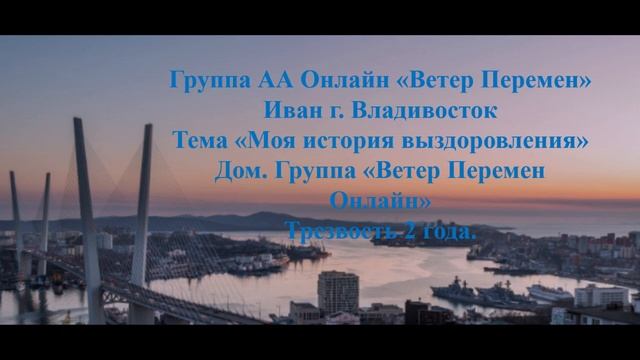 Иван г. Владивосток Тема " Моя история выздоровления" Трезвость 2 года и 11 месяцев.