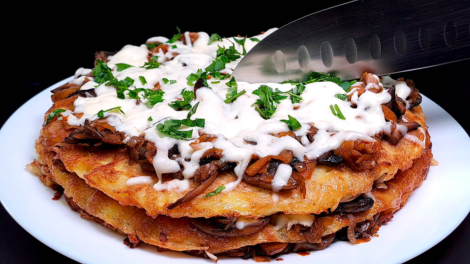 Ингредиенты к рецепту: свежая зелень петрушки. 2 яйца. 50 грамм майонеза. 50 грамм картофельного крахмала. 2 крупные картофелины. растительное масло. 1 белая луковица. растительное масло. 2 зубчика чеснока. 1 морковь. грибы шампиньоны 5 штук. соль, черный перец, паприка добавьте по вкусу. соевый соус по вкусу. 150 грамм сыра моцарелла. Подписывайся на канал и делись видео с друзьями. Также у меня на канале еще очень много вкусных рецептов, и еще больше рецептов ждет вас впереди. Вконтакте - https://vk.com/vkusnierecipe Одноклассники - https://ok.ru/group/70000000861442 Дзен - https://dzen.ru/vkusnierecipes https://dzen.ru/isrecipe Весь музыкальный контент, использующийся в видео на данном канале размещён на основании лицензии Creative Commons 4.0 вариант лицензии CC0 (https://creativecommons.org/licenses/by/4.0/) с медиатеки, где не требуется указания авторства.