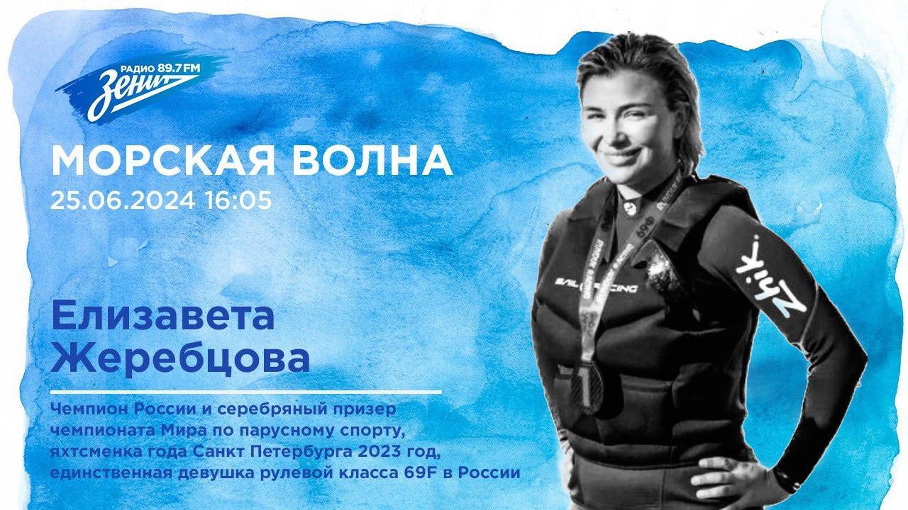 В студии «Радио «Зенит» появится Елизавета Жеребцова, чемпион России и серебряный призер первенства Мира по парусному спорту, яхтменка года Санкт Петербурга 2023, единственная девушка рулевой класса 69F в России.
