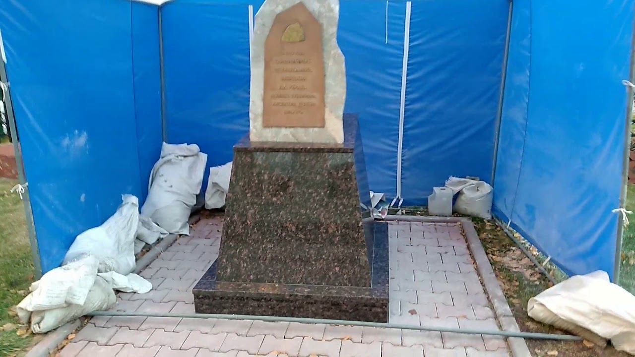 Мемориальная доска: завершена отделка гранитом основания. 2020-10-21