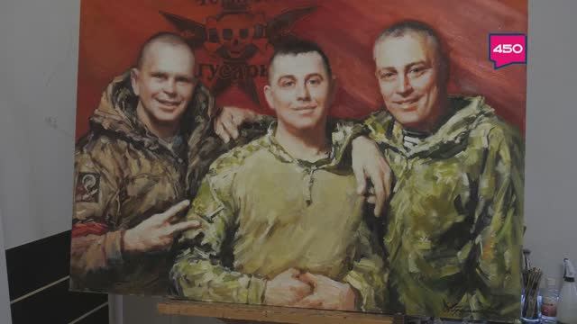 На холсте изображены трое бойцов Александрийской бригады: Алмаз, Олимп и Ахиллес. Все они погибли при освобождении Авдеевки. О полотне и истории, которая за ним стоит, — в сюжете телеканала "450" (12+).