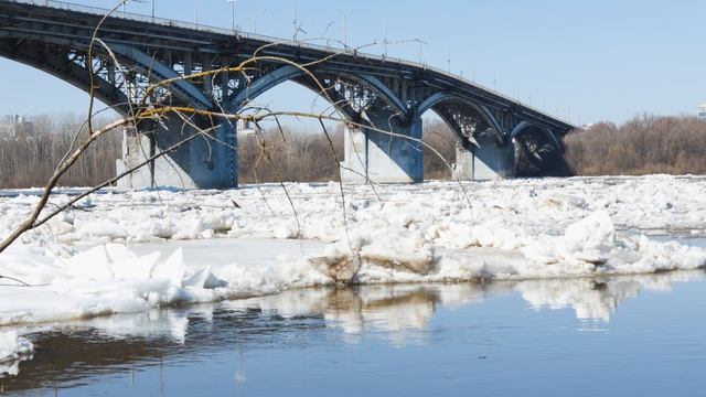 Ледоход на р. Ока в Нижнем Новгороде снят 31.03.2026 . На заднем плане Канавинский мост. Это рядом с местом впадения в р. Волга на, т.е. перед Стрелкой