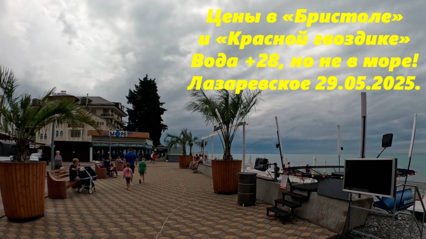 Цены в столовой Бристоль и кафе "Красная гвоздика",вода +28, но не в бассейне! Лазаревское 29.05.25