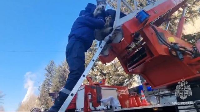 Собаку спускали по автолестнице