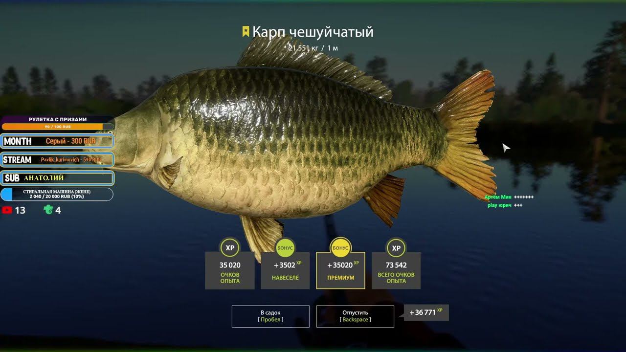Добрый день! А вот и чешуйчатый карп с медвежки! Кто спросит на что где и т.д. - заходите просто на стримы, тогда все будете узнавать первыми) Мой ник в игре - Ferdych Поддержка учителя музыки - https://www.donationalerts.com/r/ferdych Мой трово - https://trovo.live/s/Igrogamer Сделать ремонт - https://vk.cc/c2gdNs сам обычно там беру, удивляюсь низким ценам) Мебели для дома - https://vk.cc/c7Jlqf (я купил диван для сына тут) Лучшие телефоны - https://vk.cc/c2etqA #рр4 #russianfishing4 #русскаярыбалка4