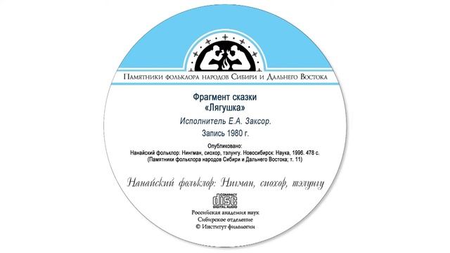 Фрагмент сказки «Лягушка». Исполнитель Е.А. Заксор. Запись 1980 г. Опубликовано: Нанайский фольклор: Нингман, сиохор, тэлунгу. Новосибирск: Наука, 1996. 478 с. (Памятники фольклора народов Сибири и Дальнего Востока; Т. 11).