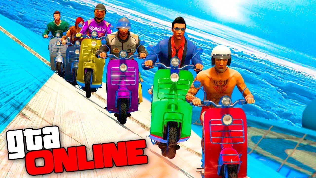 АДСКИЕ ГОНКИ ПО НЕБЕСНЫМ ТРЮКОВЫМ РАМПАМ НА МОПЕДЕ В GTA 5 ONLINE