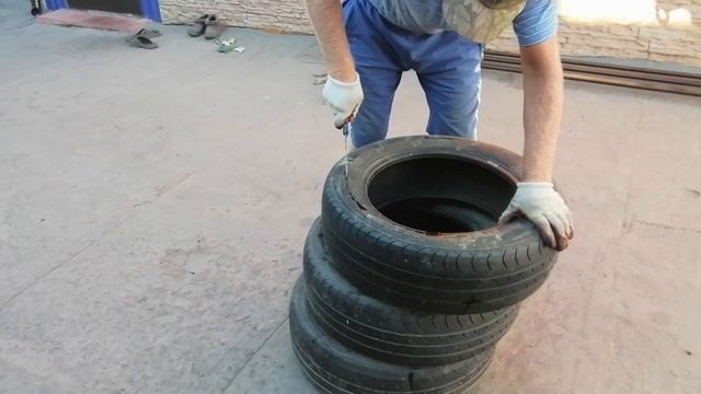 Готовлю из покрышек чтобы сделать канализационную яму. Режем простым способом покрышку автомобиля.