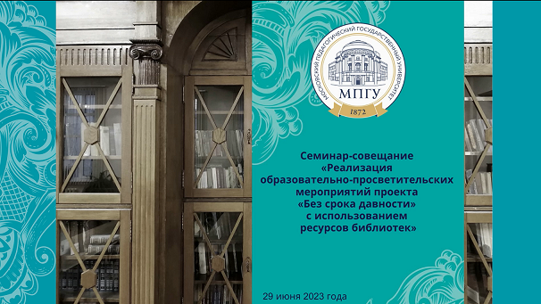 29 июня в Московском педагогическом государственном университете в очно-дистанционном формате прошел семинар-совещание «Реализация образовательно-просветительских мероприятий проекта «Без срока давности» с использованием ресурсов библиотек». Участниками семинара-совещания стали представители Библиотеки МПГУ, Дирекции изучения истории МПГУ, Управления общественных проектов, представители информационно-библиотечных систем, а также член постоянной комиссии по содействию развитию казачьей культуры Совета при Президенте Российской Федерации по делам казачества, сотрудник Российской государственной библиотеки Н.С. Матвеева. #безсрокадавности #библиотекаМПГУ
