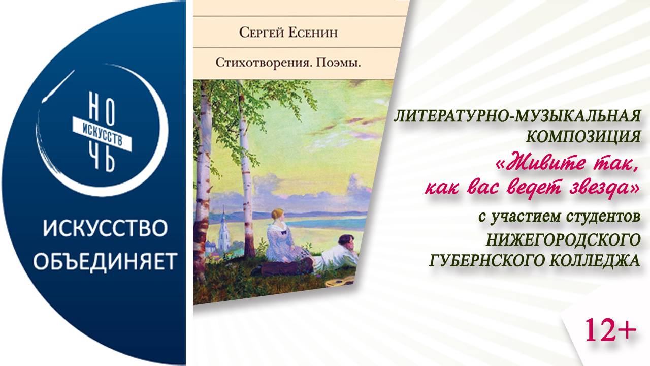 Для вас звучат лучшие произведения Сергея Есенина и песни на его стихи в исполнении студентов Нижегородского Губернского колледжа.