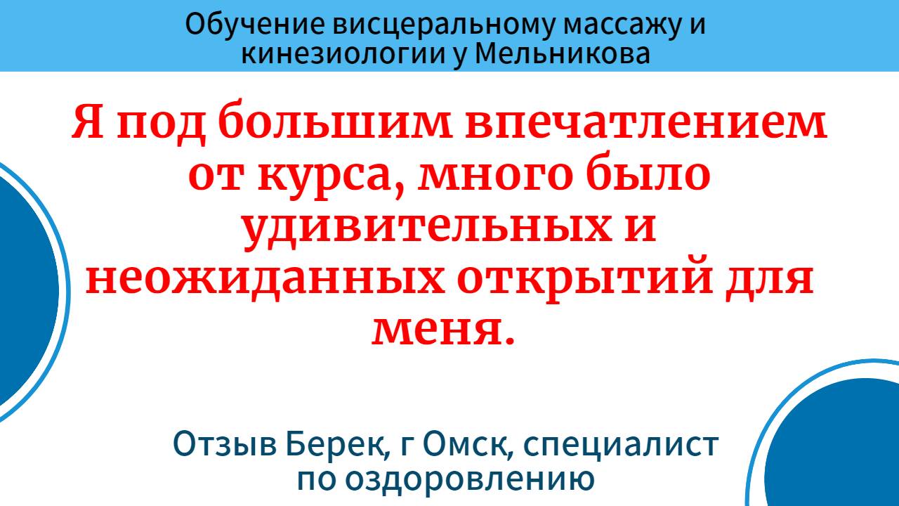 Обучение висцеральному массажу и кинезиологии. Отзыв. Берек, г Омск, специалист по оздоровлению