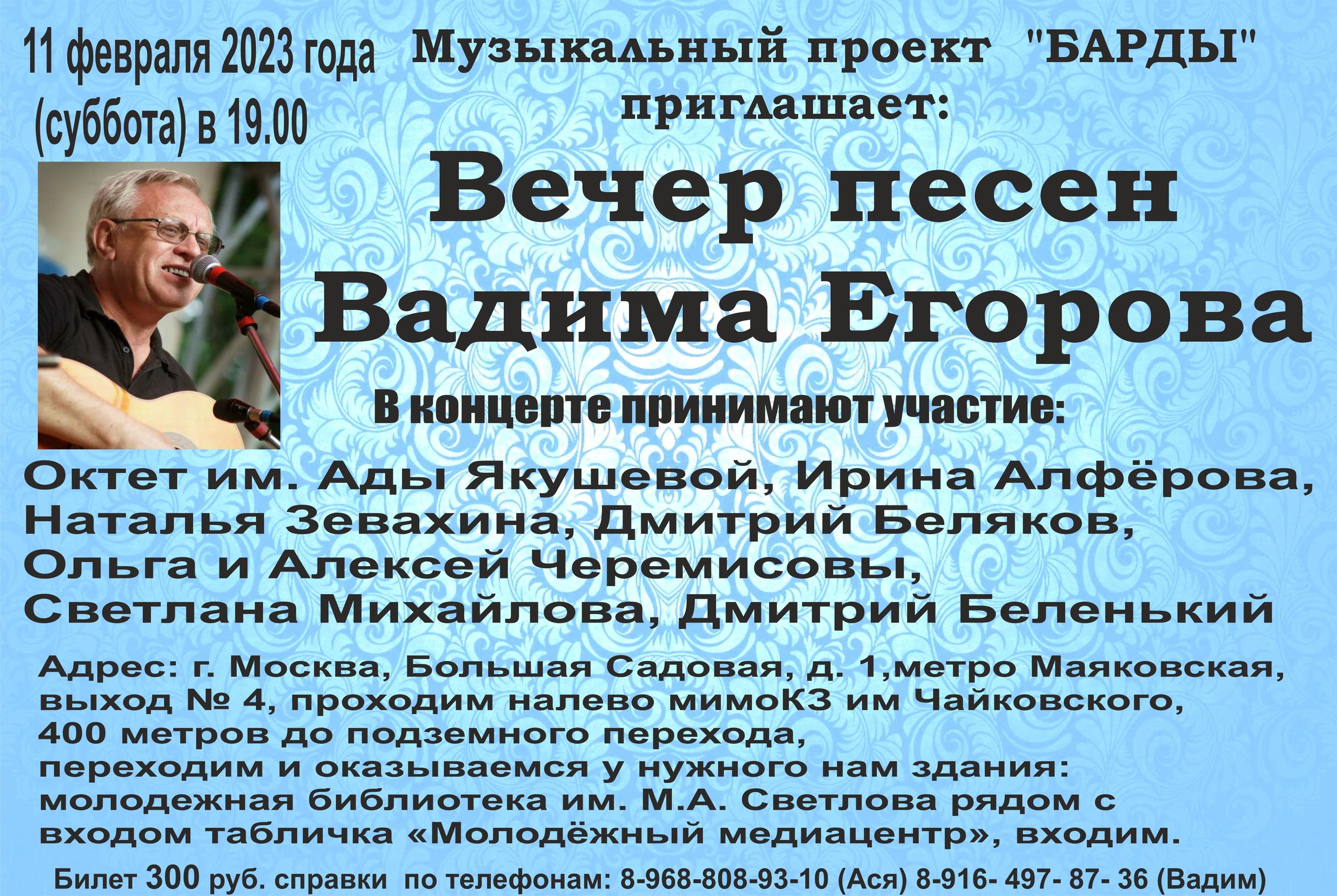Концерт песен Вадима Егорова в биб-ке им. Светлова 11.02.2023г.