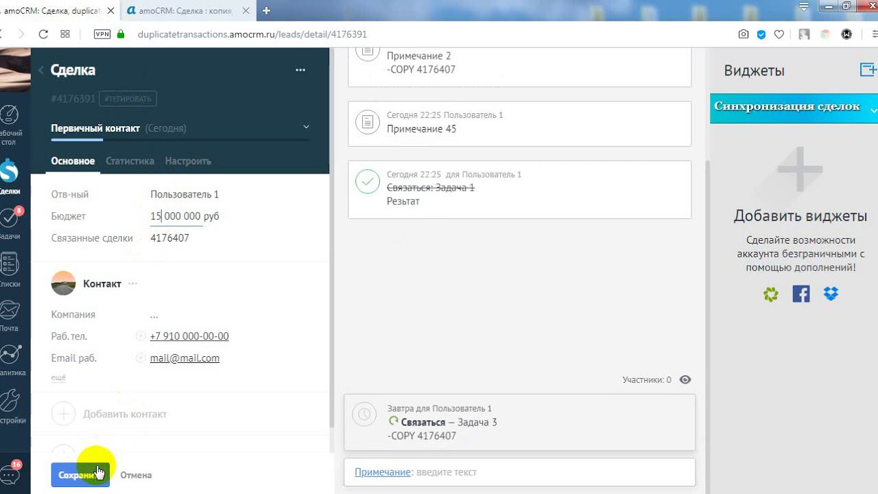 Виджет копирования и синхронизации сделок для AmoCRM (подробное описание работы виджета)