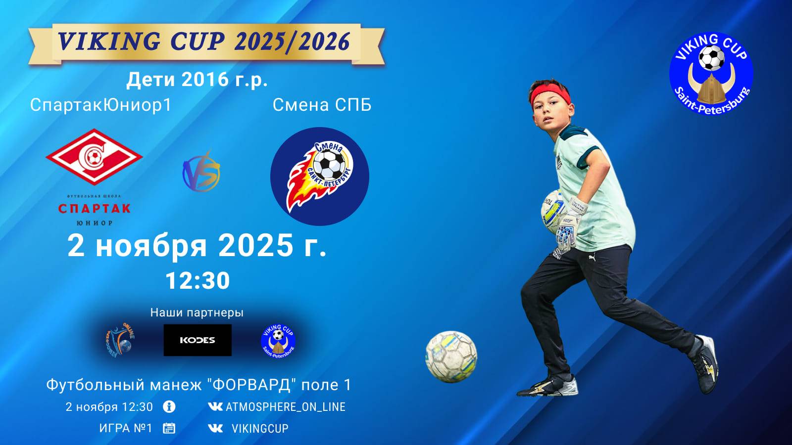 VIKING CUP среди команд 2016 г.р. (U9), Поле 1 2 ноября 2025 САНКТ-ПЕТЕРБУРГ, ФЦ "Форвард" ФК "СпартакЮниор1" - ФК "Смена СПБ"/VIKING CUP, Игра №1, 02-11-2025 12:30