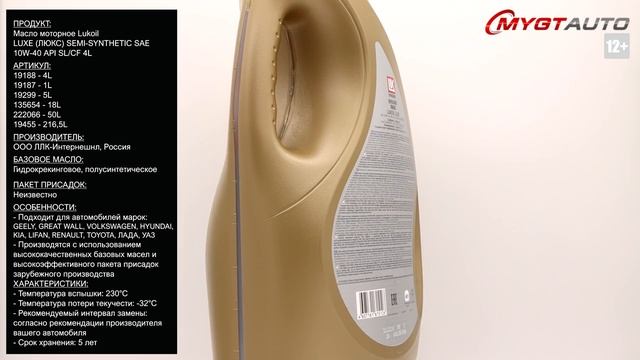 Продукт: Масло моторное Lukoil LUXE (ЛЮКС) SEMI-SYNTHETIC SAE 10W-40 API SL/CF 4L Наш телефон: 8-800-550-57-22 ПН-ПТ 9.00-17.00 (МСК+4) Артикул: 19188 - 4L 19187 - 1L 19299 - 5L 135654 - 18L 222066 - 50L 19455 - 216,5L Производитель: ООО ЛЛК-Интернешнл, Россия Базовое масло: Гидрокрекинговое, полусинтетическое Пакет присадок: Неизвестно Ссылка для покупки: https://mygt.ru/Oil/selection/lukoil-luks-10w-40-4-l-ps.html Описание: LUKOIL LUXE SAE 10W-40, API SL/CF - высококачественное полусинтетическое универсальное всесезонное моторное масло. Подходит для автомобилей марок: GEELY, GREAT WALL, VOLKSWAGEN, HYUNDAI, KIA, LIFAN, RENAULT, TOYOTA, ЛАДА, УАЗ. Производятся с использованием высококачественных базовых масел и высокоэффективного пакета присадок зарубежного производства. Одобрено: ПАО "ЗМЗ" ОАО "УМЗ" ОАО "АВТОВАЗ" Соответствует требованиям: API SL/CF Масло LUKOIL LUXE SEMI-SYNTHETIC SAE 10W-40, API SL/CF предназначено для современных высокофорсированных бензиновых и дизельных двигателей импортных и отечественных легковых автомобилей, микроавтобусов и легких грузовиков, требующих применения смазочных материалов класса API SL/CF (или более ранних эксплуатационных классов). - Стабильность вязкостно-температурных свойств в течение всего срока эксплуатации. - Способствуют легкому пуску двигателя при низких температурах. - Обеспечивают надежную защиту двигателя от износа и коррозии в жестких условиях эксплуатации. - Предотвращают образование высоко- и низкотемпературных отложений на деталях двигателя. - Не оказывают вредного воздействия на каталитический нейтрализатор автомобиля. Характеристики: - Плотность при 20°С ГОСТ 3900/ASTM D1298/ASTM D4052: 862.6кг/м³ - Вязкость кинематическая при 100°С ASTM D445/ГОСТ 33/ГОСТ Р 53708: 13.3мм²/с - Индекс вязкости ГОСТ 25371/ASTM D2270: 162 - Динамическая вязкость (CCS) при -25°С ASTM D5293/ГОСТ Р 52559: 4730мПа*с - Динамическая вязкость (MRV) при -30°С ASTM D4684/ГОСТ Р 52257: 34400мПа*с - Щелочное число, мг КОН на 1 г масла ГОСТ 30050/ASTM D2896: 8.0мг KOH/г - Щелочное число, мг КОН на 1 г масла ГОСТ 11362 7.0мг KOH/г - Сульфатная зольность ГОСТ 12417/ASTM D874: 1.1% - Испаряемость по методу Ноака, ASTM D5800/DIN 51581-1: 12.6% - Температура вспышки в открытом тигле ГОСТ 4333/ASTM D92: 230°C - Температура застывания ГОСТ 20287 (метод Б)/ASTM D97: -32°C - Срок хранения: 5 лет - Рекомендуемый интервал замены: согласно рекомендациям производителя вашего автомобиля Отличия оригинальной упаковки: - ВПЛАВЛЯЕМАЯ ЭТИКЕТКА вплавлена в поверхность канистры, защищена от влаги и прямых солнечных лучей - ТЕРМО-МАРКИРОВКА с индивидуальным номером канистры, номером партии и даты производства, который находится под штрих кодом в нижнем поле задней этикетки - ДОПОЛНИТЕЛЬНАЯ МАРКИРОВКА НА ДНЕ КАНИСТРЫ: Шесть информационных полей с данными - Крышка канистры двухкомпонентная, с прорезиненными вставками Ссылки на дополнительные материалы по продукту, а также SDS и TDS: http://nskrobot.ru/images/FOTO/MYGT_RU/19188_SDS_MYGT_RU.pdf http://nskrobot.ru/images/FOTO/MYGT_RU/19188_TDS_MYGT_RU.pdf #характеристикимасла19188 #моторноемасло #antonmygt #mygtru #mygtauto #oemcatalog Наш сайт: MYGT.RU Наш канал ПРАВДА ПРО АВТОМАСЛА: https://www.youtube.com/channel/UC5JygfcXAA5Xq18sxUx_wIQ/ Телефон: 8 800 550 57 22 Бесплатно по России Внимание! Полное либо частичное копирование данного материала без согласия автора допускается только при указании ссылки на источник (данный канал) Все права защищены ANTON_MYGT #anton_mygt #anton_voronkov #mygtauto #масломан #каталог масел и спецжидкостей