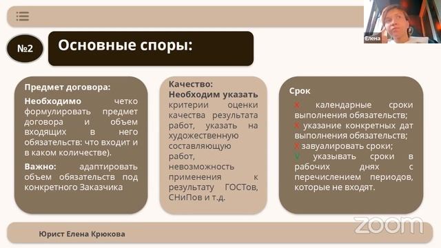 Узнайте за 1 час: как обезопасить себя от судебных разбирательств и претензий со стороны заказчиков; почему работа без договора на руку вашему клиенту; почему не стоит использовать договор, скачанный из Интернета; на какой срок лучше всего заключать договор; для чего и когда нужно использовать доп.соглашения; какие виды договоров должны быть у дизайнера на руках для каждого проекта; ...и о многих других полезных нюансах, о которых важно знать каждому дизайнеру, чтобы избежать ненужных проблем.
