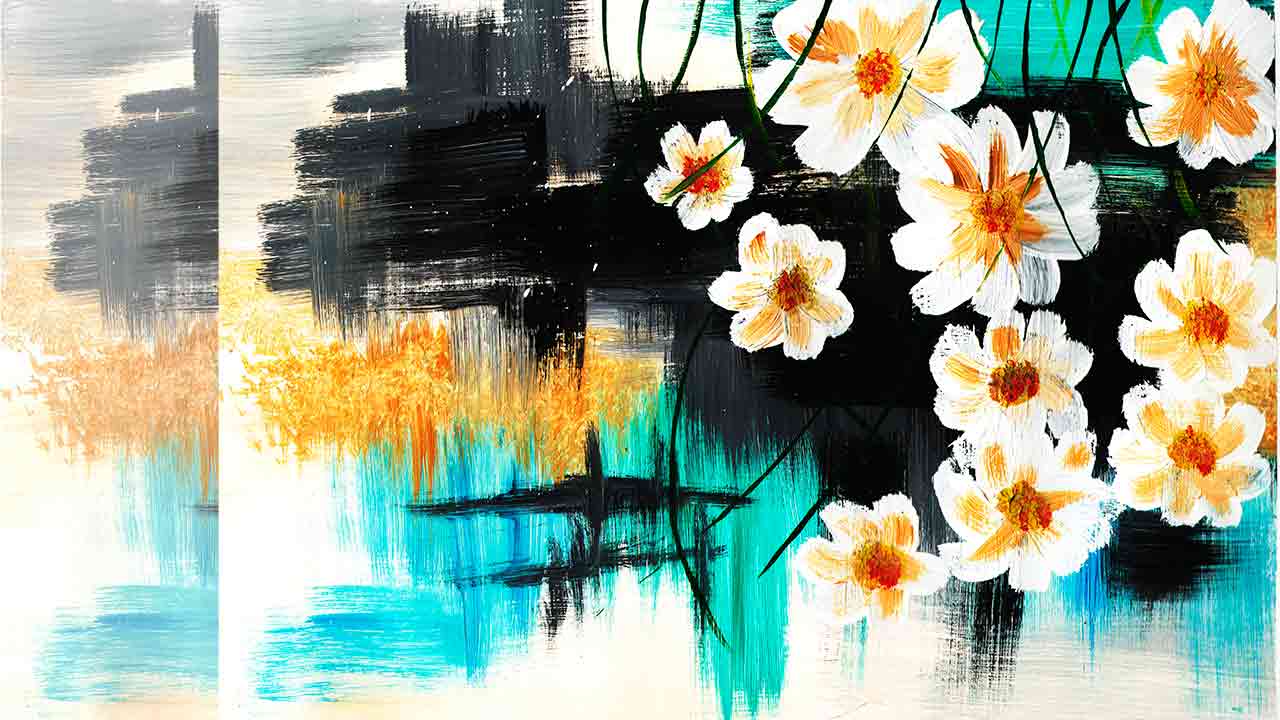 Как нарисовать интерьерную картину. Рисуем цветы легко. Рисуем яркую картину. Рисуем необычный фон.