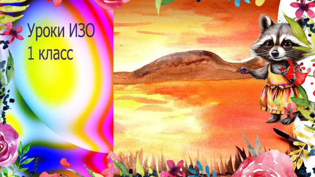 Рисуем закат на озере акварель. Урок ИЗО. Разноцветная радуга-дуга. Тёплые и холодные цвета.
