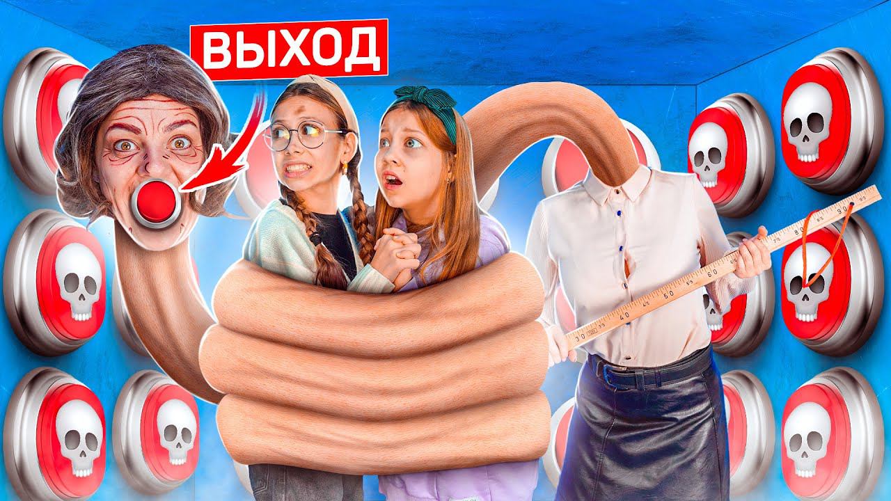 100 КНОПОК НА ХЭЛЛОУИН! В ДОМЕ УЧИЛКИ МАЛЕНЬКИХ КОШМАРОВ! 100 кнопок в реальной жизни!