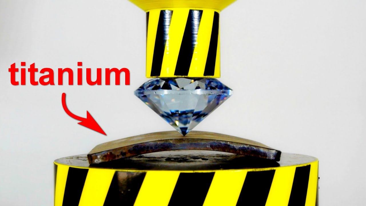 We will test the strength of a glass diamond and titanium armor plates with a hydraulic press
