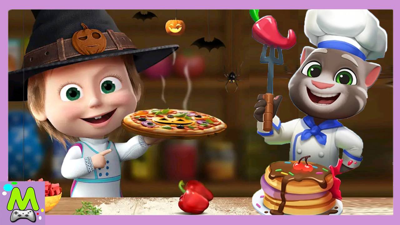 Маша и Медведь Пиццерия vs Мой Говорящий Том Друзья 2 Кулинарное шоу мультгероев
