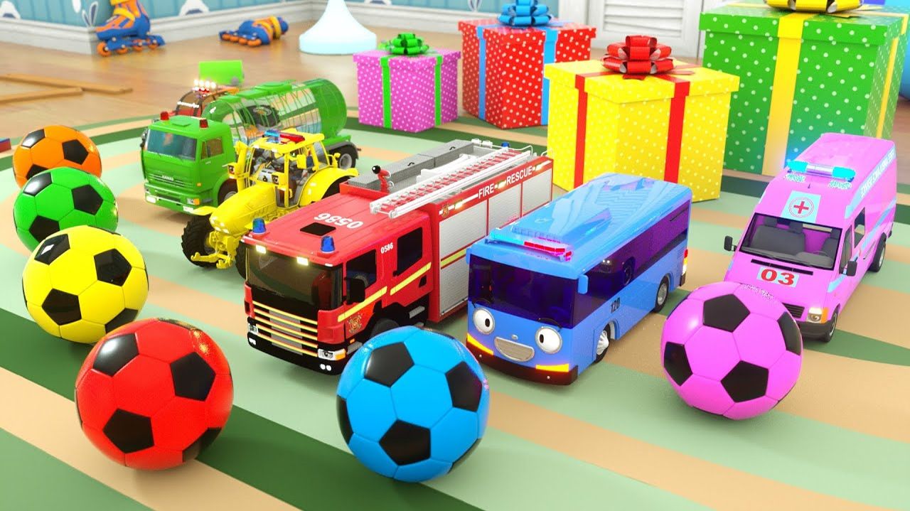 Пожарная машина и автобус Тайо машина скорой помощи трактор сборка футбольных мячей-сюрпризов и шин