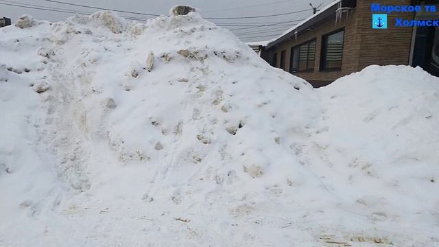 Кучи снега и мусор на Приморском бульваре города Холмск 31 января 2024 года