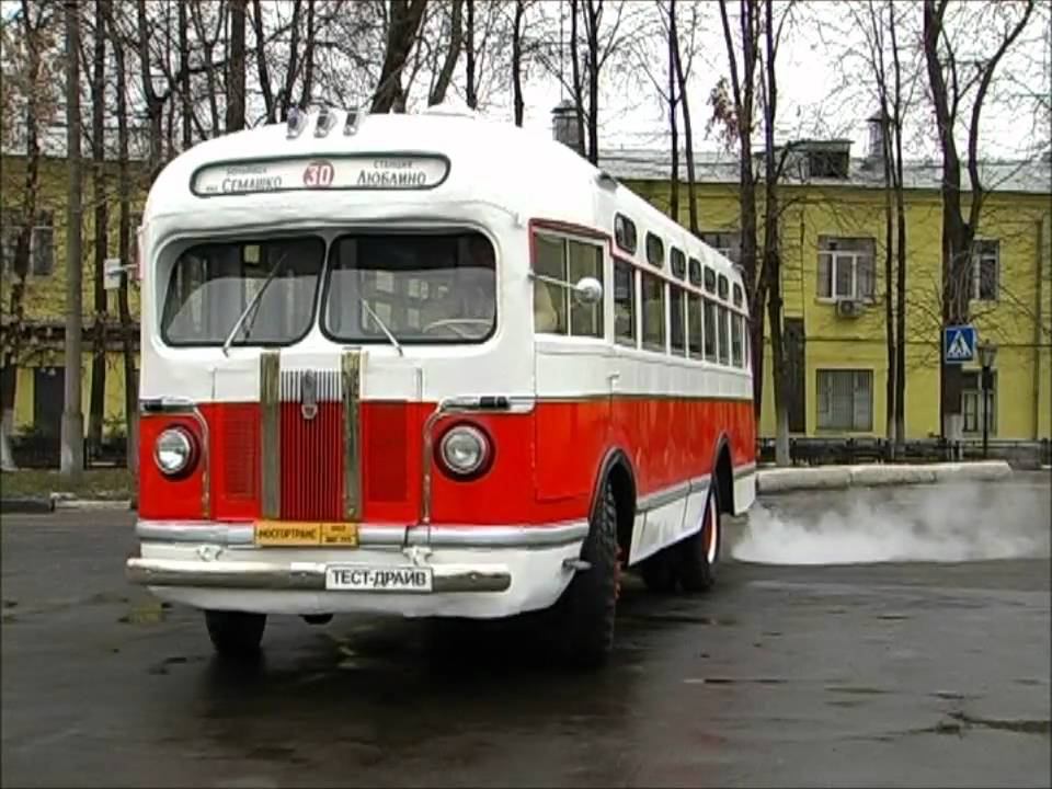 место проживания http://zenkevich.ru/ правообладатель http://www.utro-russia.ru/ производство ООО"ТВпро Медиа" Автобус ЗИС-155 самая массовая модель отечественных городских машин 50-х годов, уже прошлого века. Кузов автобуса вагонной компоновки несущего типа и привычной рамы не имеет. И.З.- Кстати, он обшит не стальными, а алюминиевыми листами, в нем вообще очень много алюминия. Да... а вот фирменная эмблема ЗиС, в простонародье «селёдка». За все время производства 1949 - 1957 она оставалась неизменной. Советский флаг на фоне Дворца Советов, который собирались построить на месте Храма Христа Спасителя. В кабине перед глазами водителя располагаются четыре жизненно необходимых стрелочных прибора. Половину головного отсека занимает двигатель объемом 5,5 литров и мощностью 95 лошадиных сил, он очень прожорлив, потребляет около 40 литров на сотню. Но это пол беды, львиная доля отработанных газов попадает прямо в кабину водителя. И.З.- Пять передач, в современной машине, это благо. Здесь же... пытка. Их постоянно надо переключать, так как сами передачи короткие, а мотор маломощный. В общем, правая рука постоянно занята, а надо учесть, что еще запотевают стекла, так как печки нет, их необходимо протирать. Зато в салоне их три. Правда, это не очень спасало пассажиров, они соединены последовательно и греют очень слабо. В ЗИС-155 могут разместиться 23 пассажира на сидячих местах и 21 — стоя. И.З.- Да потолочек низковат, но, как говорится лучше плохо ехать, чем хорошо идти. А вот этот шнурок, называется Сигнальный «прибор» и тянется он в кабину водителя. Дерни за веревочку и дверь откроется. (Я открываю дверь, заходят люди) Высокая подножка, узкий дверной проем и отсутствие накопителя перед самим входом не облегчает посадку пассажиров в автобус. Тем более, что положено было заходить в заднюю дверь, а передняя использовалась для выхода. Зато 155 достаточно плавен в движении. Кстати впервые среди советских автобусов и грузовых машин в задней подвеске были применены гидравлические амортизаторы двухстороннего действия. И.З.- Ну, что за люди, не какого уважения!!! Куда ты лезешь!!! Дай повернуть, это же автобус!!! Радиус поворота великоват по современным меркам, да и длинна кузова около 8,5 метров не способствует маневренности на городских улицах. Подписывайтесь на наш канал и получайте свежие новости, тест-драйвы и обзоры автомобилей из первых рук!
