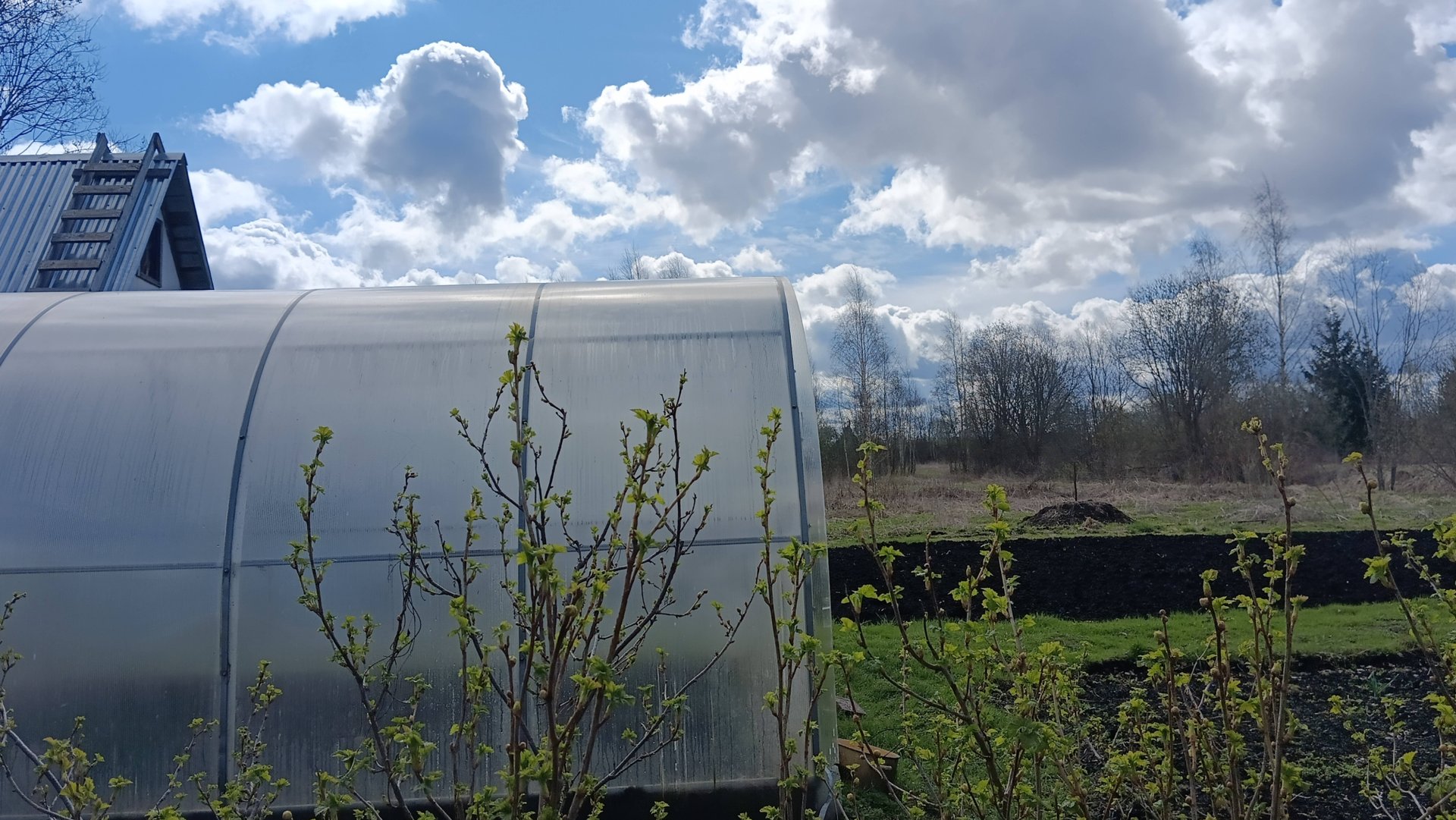 На огороде все начинает зеленеть.Природа оживает.