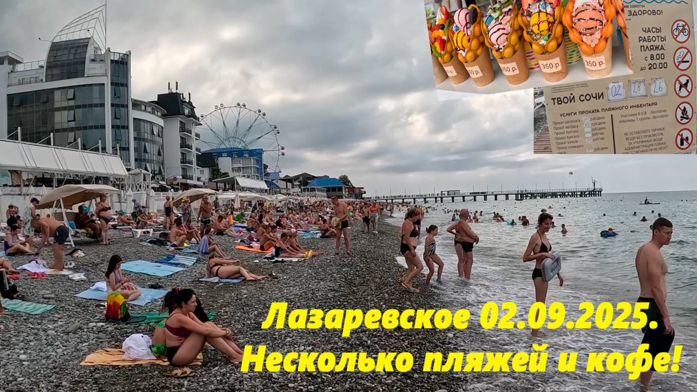 Лазаревское 02.09.2025 Несколько пляжей и кофе! ЛАЗАРЕВСКОЕ СЕГОДНЯ.