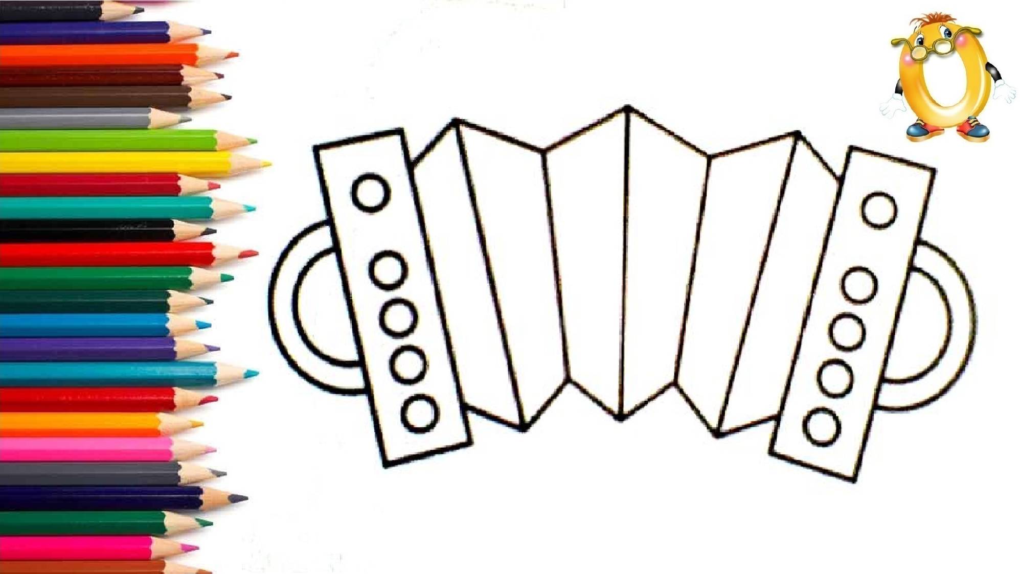 Мультик - раскраска для детей ГАРМОШКА. Учимся как рисовать ГАРМОНЬ вместе с детьми // ОБУЧАШКА ТВ