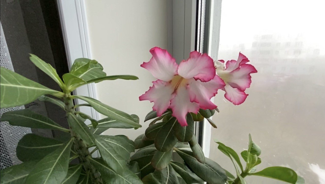 Адениум, белый бутон! Сюрпризы адениумов. Слоновая нога, она же нолина, она же бокарнея. Прогулка в тумане. Старая лестница. 29 марта 2023 г.