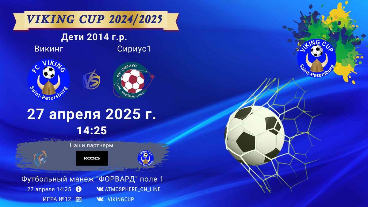 VIKING CUP среди команд 2014 г.р. (U11), Поле 1 27 апреля 2025 САНКТ-ПЕТЕРБУРГ, ФЦ "Форвард" ФК "Викинг" - ФК "Сириус1"/VIKING CUP, Игра №12, 27-04-2025 14:25