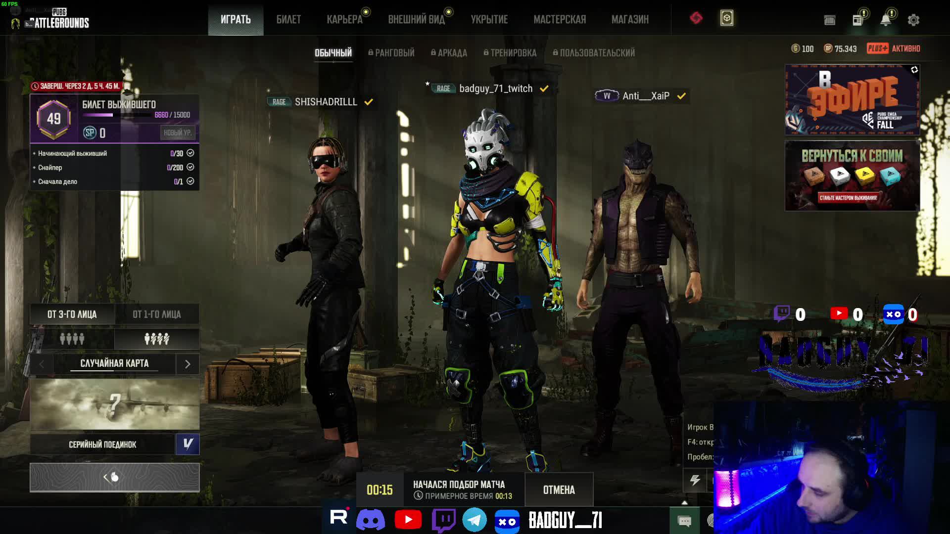 Поддержать стримера: https://www.donationalerts.com/r/badg... Карта для прямого доната: 2200 3005 6657 3711 Канал на Twitch: / badguy_71 Мой телеграм канал: https://t.me/badguy_71 Мой Kick: https://kick.com/badguy-71 Мой VK Play: https://live.vkplay.ru/badguy_71 Всем привет! Зовут Дима, 41 годик, играю в pubg много и с удовольствием. Стримы каждый день. Мой компьютер Процессор Intel Core i5-11400F Видеокарта Palit GeForce RTX 3060 Ti Оперативная память 32 gb