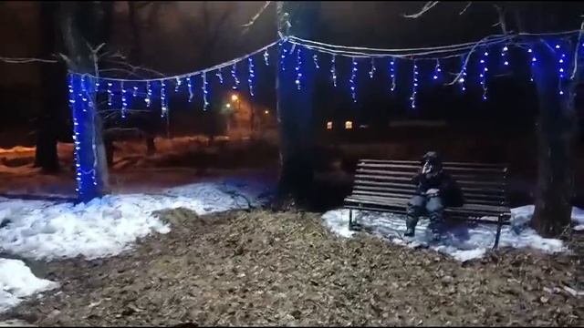 Муж украсил площадку у пруда для детского праздника гирляндами к новому году 2024
